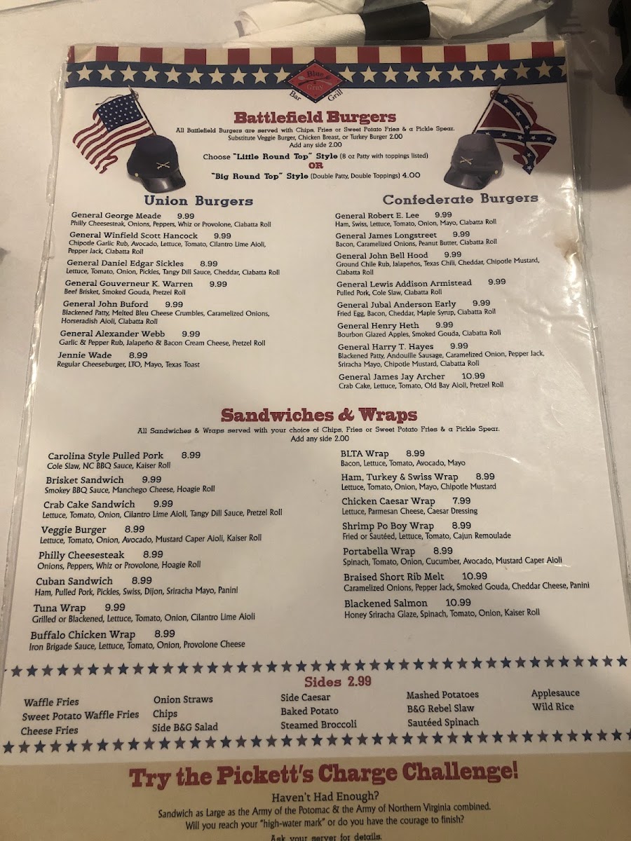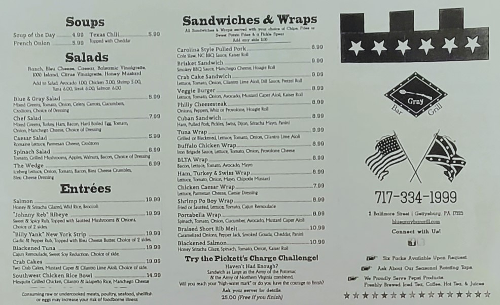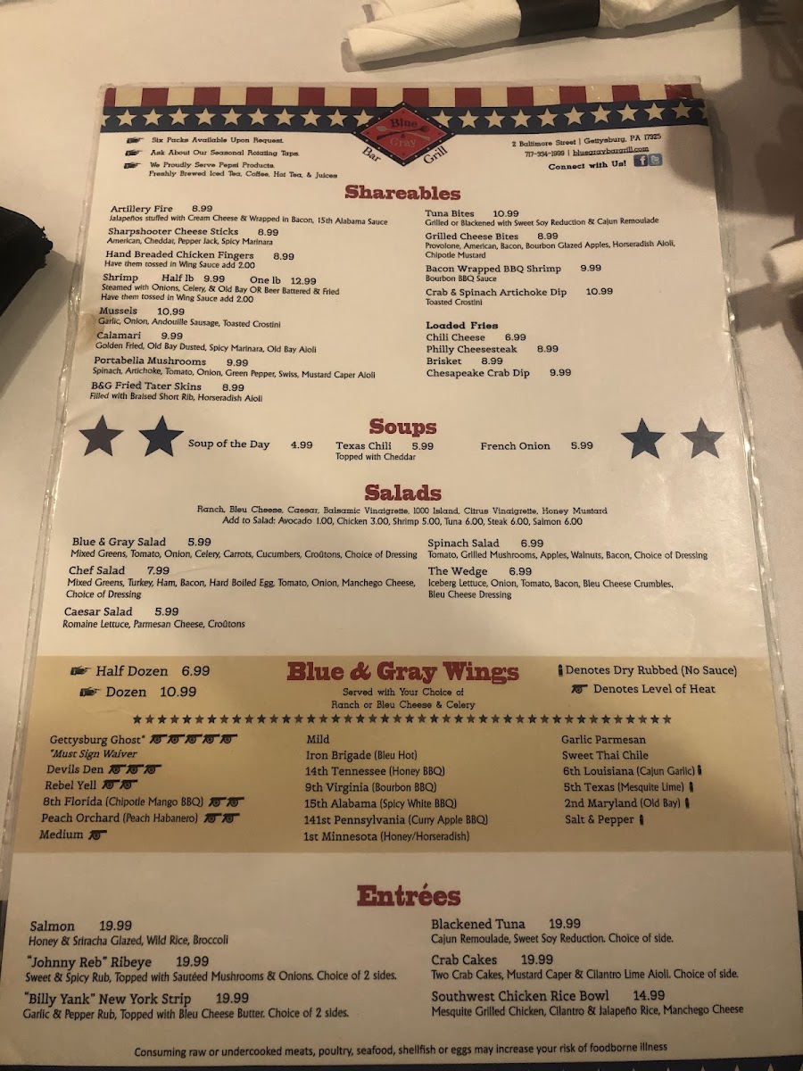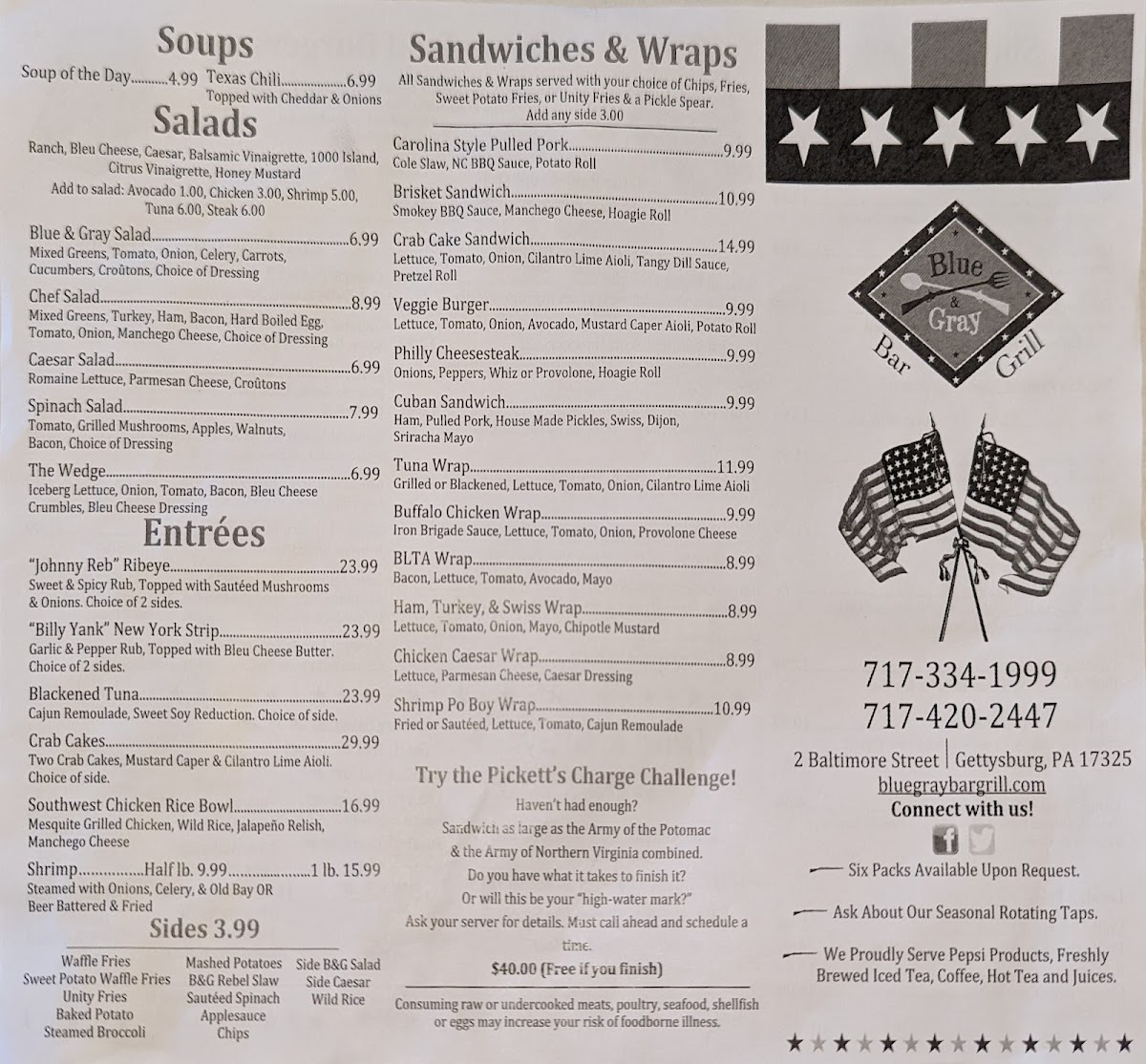 With attentive service and reasonable prices, Blue & Gray Bar & Grill is a must-visit for locals and travelers alike, promising a satisfying dining experience with a taste of Gettysburg's charm.