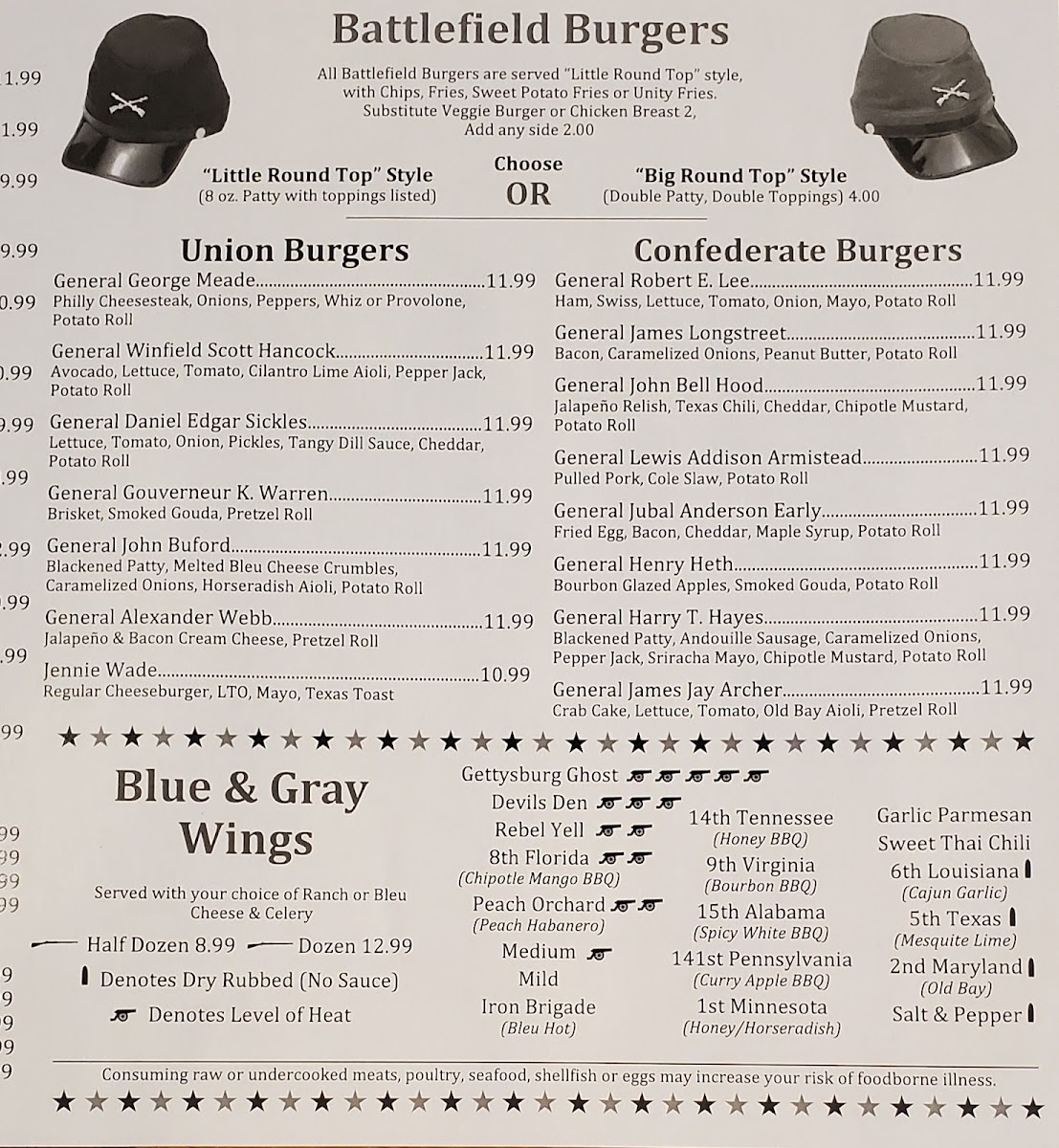 A sandwich as large as the Army of the Potomac and the Army of Northern Virginia combined. Do you have what it takes to finish it? Or will this be your "high-water mark?" Ask your server for details